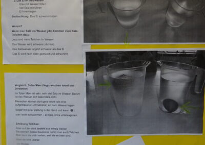 Beim Süß- und Salzwasserexperiment konnte gezeigt werden, dass frische und ungekochte Eier im Salzwasser oben schwimmen, im Süßwasser unten.